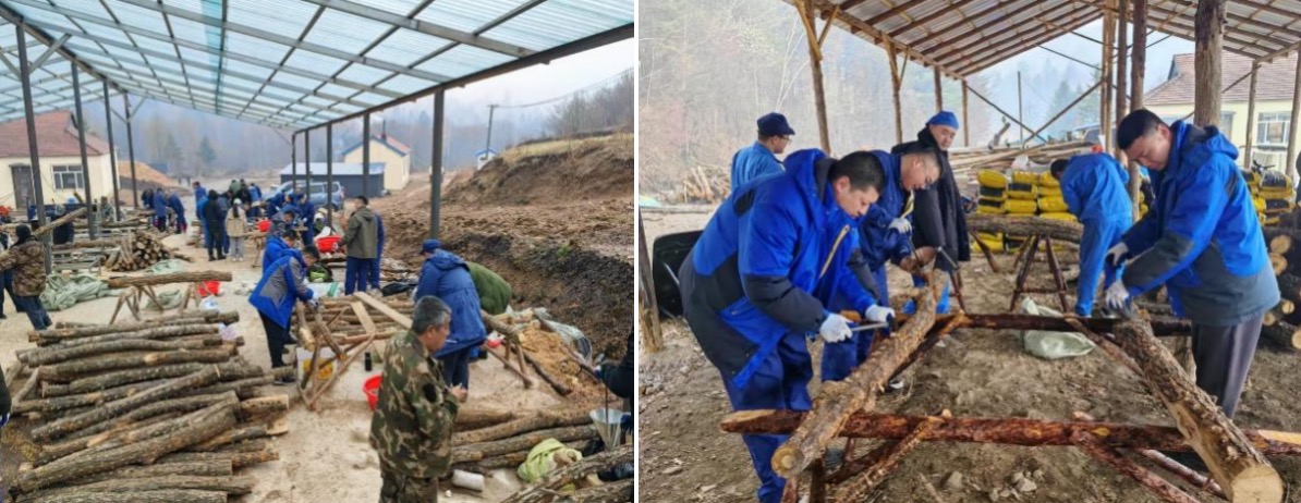 當2025年的第一縷春風掠過長白林海,吉林敖東延邊藥業49名精銳已迅速組建完成。這支由提取、前處理車間技術骨干與后勤尖兵混編的“春風特別行動隊”,于4月27日迎著料峭春寒踏上征途。在安圖木耳種植基地展開了72小時大會戰,既是對集團戰略部署的莊嚴回應,更是新時代產業工人精神圖譜的生動描摹。 一、“戰地”風云 1.春雨礪鋒:4月27日,出征車隊劃破延邊晨霧,49名“特種兵”在淅瀝春雨中開啟戰略急行軍。車廂化作移動指揮部,此起彼伏的菌種活性研討與窗外雨打白樺的韻律共振;泥濘戰場里,“菌袋運輸連”在濕滑坡道走出之字陣型,“菌架工兵排”于泥沼中架設鋼鐵矩陣。午間休整時,水餃化作蒸汽騰騰的“戰地炊煙”,為下午的攻堅戰儲備熱能。