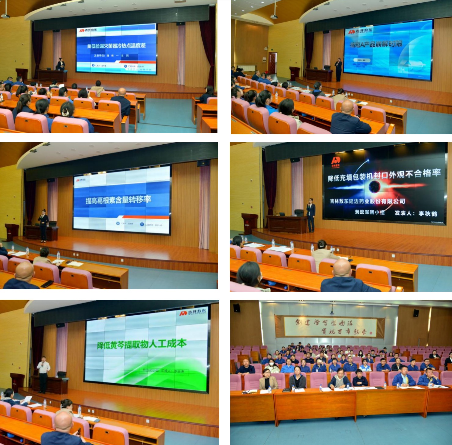 二、課題申報與推進 1. 聚焦生產痛點精準立項:各車間圍繞工藝優化、質量管理、成本控制等實際存在的焦點問題,積極申報QC課題,組織專業技術人員全力推進,取得較好效果。固體一車間《縮短A產品崩解時限》,提取車間《降低黃芩提取物人工成本》、《提高葛根素含量轉移率》,液體二車間《降低充填包裝機封口外觀不合格率》,液體一車間《降低檢漏滅菌器冷熱點溫度差》。 2.閉環管理確保成果轉化:建立跟蹤評審推進機制,5項課題均形成閉環改善方案,且均形成標準化SOP,成果已應用于生產實踐。